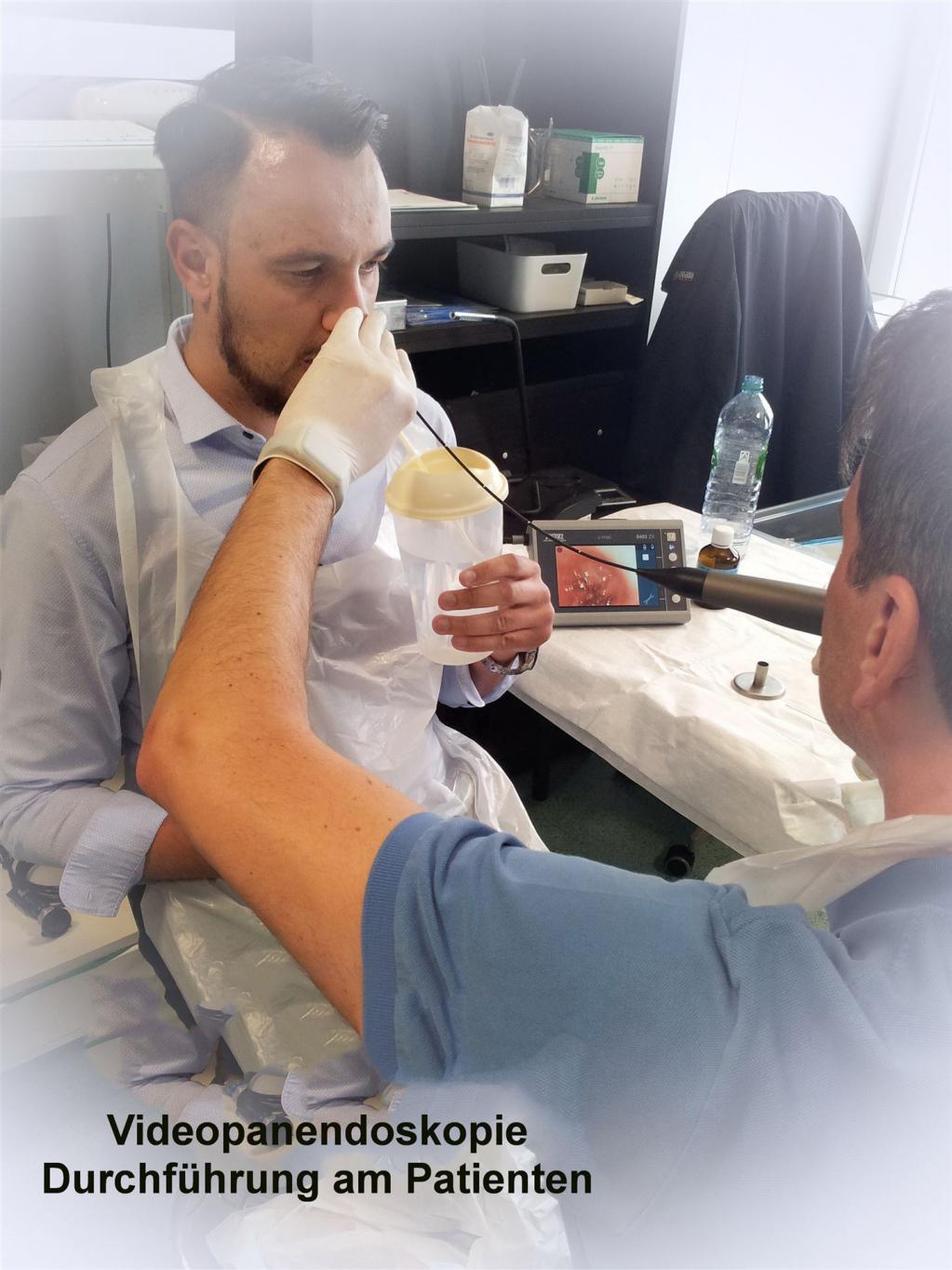 Die VPE ist eine neuere Untersuchungsmethode bei der transnasal im Sitzen mit einem dünnen flexiblen Endoskop ohne Luftinsufflation videoendoskopisch bis in den Magen untersucht wird.
